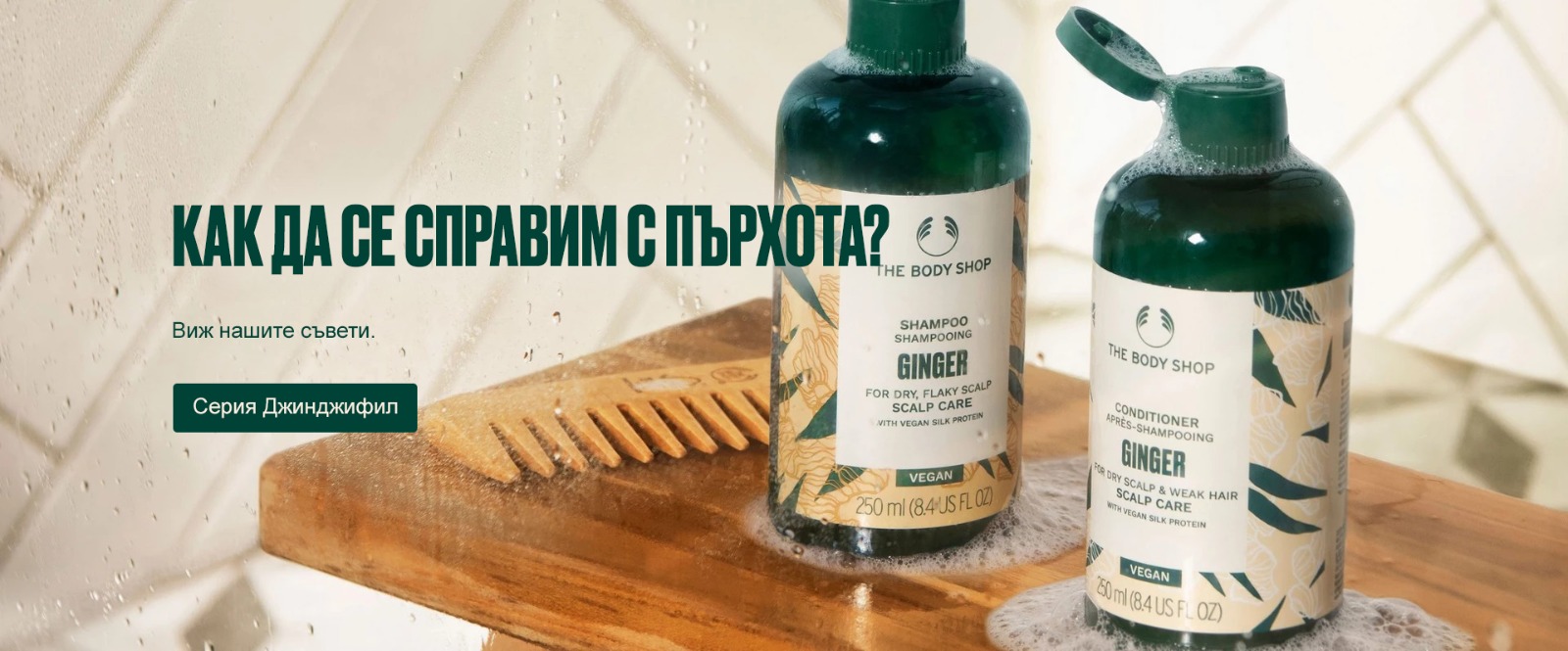 Кажете „сбогом“ на пърхота с нашия режим за грижа за косата в три лесни стъпки. Обогатени с етерично масло от джинджифил, екстракти от бреза и бяла върба, продуктите от серия Джинджифил помагат да се преборим със сухия, лющещ се скалп. Те успокояват, подхранват и възстановяват баланса на сухия скалп и се борят срещу сърбежа и появата на лющене на скалпа, причинени от сухотата.